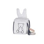 Motif : - Risque d’ingestion causé par la présence d’un petit élément amovible (tétine et main) - Risque d’ingestion par l’accès au rembourrage fibreux - Piles boutons accessibles et risque d’ingestion de ces piles