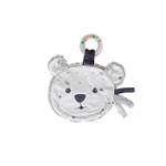 Motif : Motif : risques d'arrêt respiratoire causés par l'attache et par la peluche Risque : ingestion, étranglement, étouffement Description complémentaire : risque d’étouffement par régurgitation causée par la pince et l’anneau, risque d ingestion.