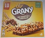 Motif : Présence potentielle de 6 barres de Grany Noisettes dans des étuis de Grany barres riz soufflé et chocolat