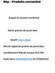 Motif : Graines de chia contaminées à l'oxyde d'éthylène avec une teneur supérieure à la LMR.