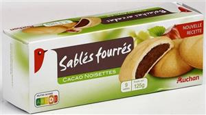 AUCHAN SABLÉS FOURRÉS NOISETTES 125G