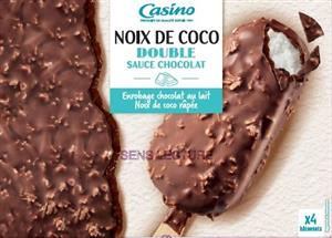 Bâtonnets noix de coco double sauce chocolat enrobage chocolat au lait noix de coco râpée x4 298g / 360ml CASINO