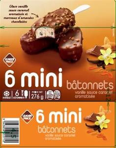 6 Mini bâtonnets Vanille Caramel Amande Leader Price 276g