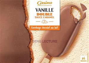 Bâtonnets vanille double sauce caramel enrobage chocolat au lait x4 340g / 440ml CASINO