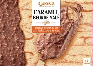 Bâtonnets caramel beurre salé enrobage chocolat au lait avec éclats de crêpes dentelle x4 308g / 400ml CASINO