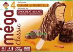 Méga Classique – 4 Bâtonnets Caramel au beurre salé enrobage au chocolat au lait et brisures de crêpes dentelle – 308g / 400 ml – Leader Price