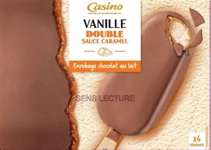 Maxi bâtonnets vanille double sauce caramel enrobage chocolat au lait x4 340g / 440ml Casino