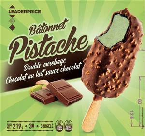 Bâtonnet Pistache double enrobage chocolat au lait sauce chocolat x3 219g – Leader Price