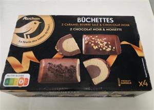 AUCHAN BUCHETTE NOISETTES CHOCO ET CHOCOLAT CARAMEL X4 310G