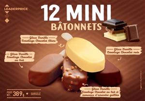 12 Mini bâtonnets Glace vanille Chocolat 389g / 540ml LEADER PRICE