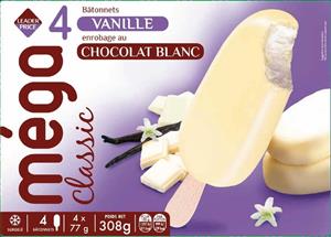 4 Bâtonnets vanille enrobage chocolat blanc 308g / 440ml LEADER PRICE