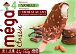 4 MEGA Classique bâtonnets vanille enrobage chocolat au lait et morceaux d’amandes grillées 314g / 440ml LEADER PRICE