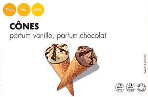 Cônes glacés x8 4 chocolat 4 vanille 880ml Tous Les Jours