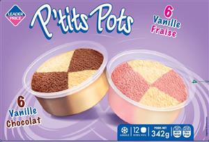 6 P’tits pots vanille fraise et vanille chocolat 342g Leader Price