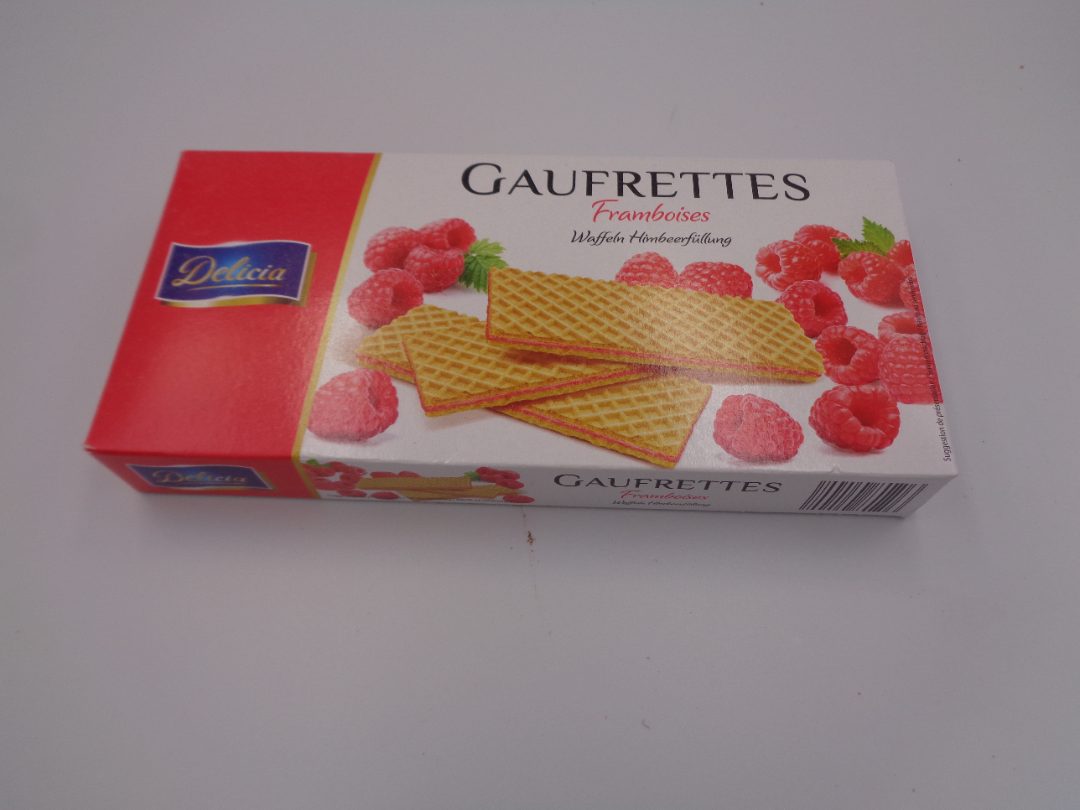Gaufrettes avec 66,3% de fourrage aux framboises, aromatisées DELICIA