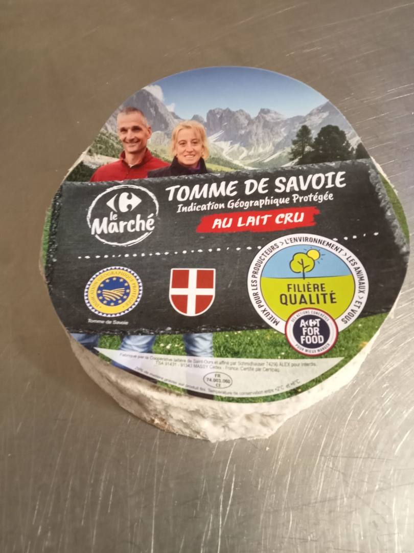 - Tomme de Savoie au lait cru commercialisé au rayon fromages à la coupe