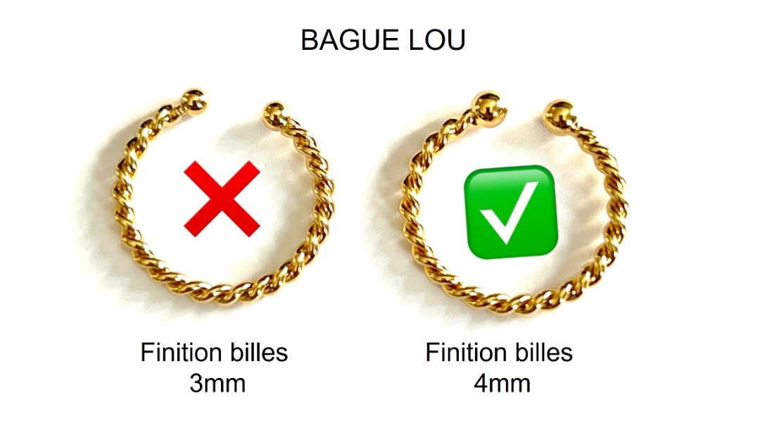 - Bague LOU dans sa première version commercialisée avec des petites billes 3 mm en finition