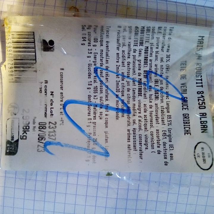 - TETE DE VEAU SAUCE GRIBICHE - rayon coupe
