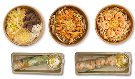 - PAD THAÏ POULET, PAD THAÏ CREVETTE, BO BUN BOEUF, ROULEAUX DE PRINTEMPS CREVETTE, ROULEAUX DE PRINTEMPS VEGGIE, ROULEAUX DE PRINTEMPS SAUMON, ROULEAUX DE PRINTEMPS BOEUF, ROULEAUX DE PRINTEMPS POULET