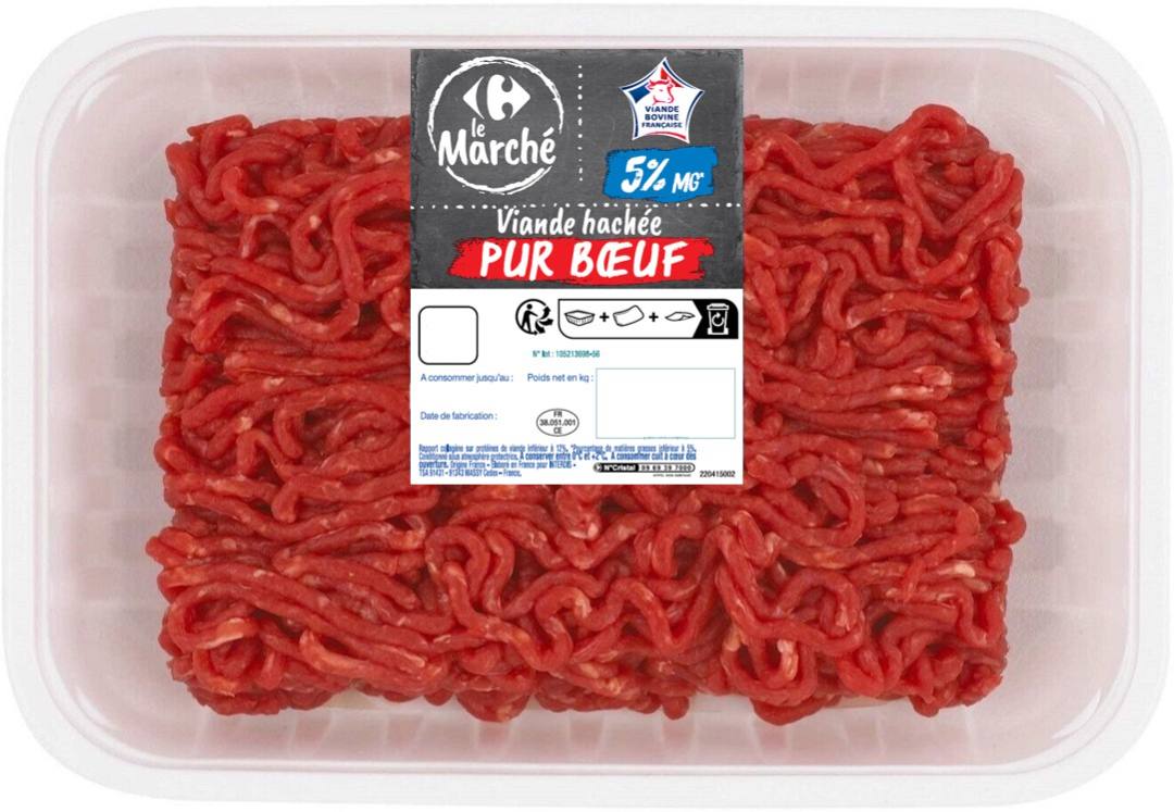 - VIANDE HACHEE PUR BOEUF 5%MG CARREFOUR LE MARCHE barquette de 350g VIANDE HACHEE PUR BOEUF 5%MG CARREFOUR LE MARCHE barquette de 500g