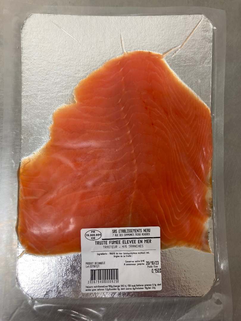 - Truite élevée en mer fumée - 4/6 tranches 150g