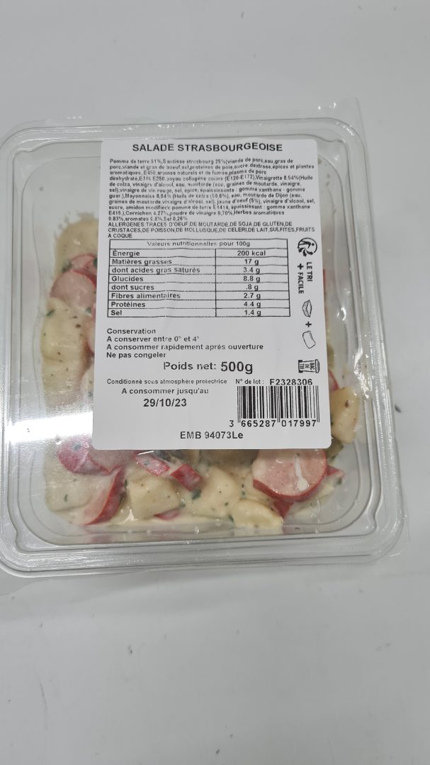 Identification des produits GTIN Lot Date 3665287018079 LOT F2328306 500g Date limite de consommation 29/10/2023 3665287018062 LOT F2328305 250 g Date limite de consommation 29/10/2023 3665287018307 LOT F2328307 800 g Date limite de consommation 29/10/2023 - Conditionnements