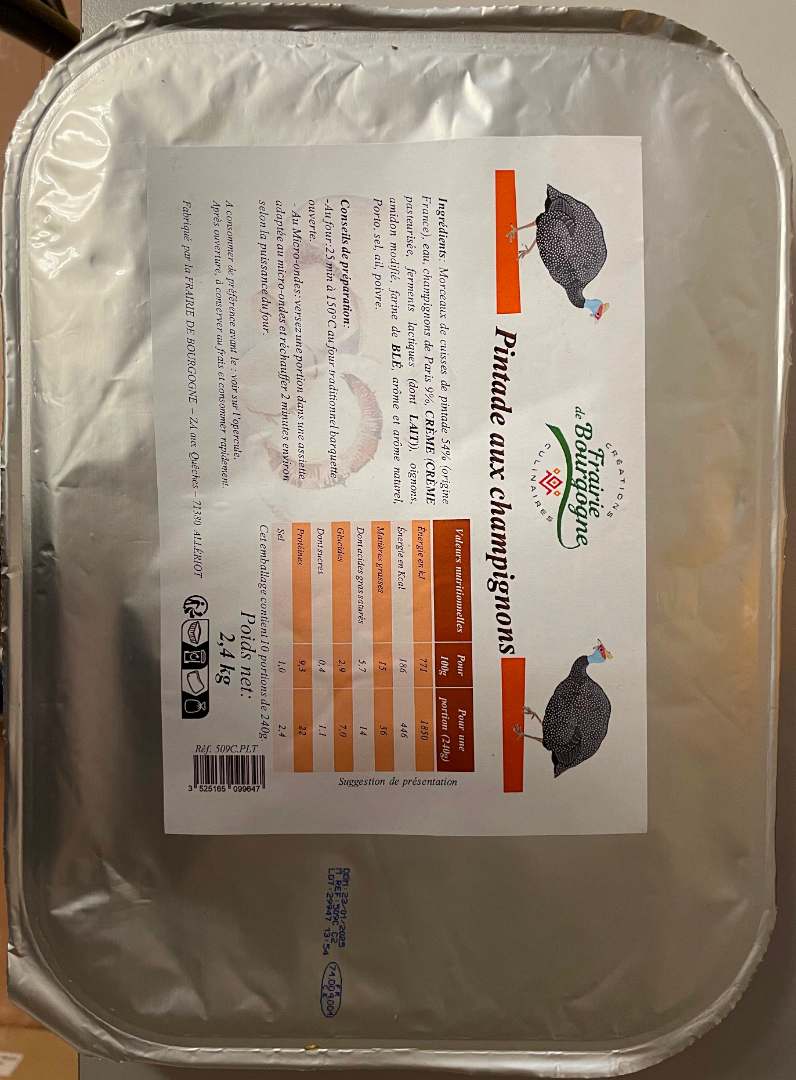 - 509C.PLT: Pintades aux champignons en plateau de 2,4kg