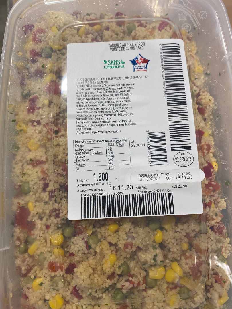 Identification des produits GTIN Lot Date 318158284558 330001 Date limite de consommation 18/11/2023 - Conditionnements