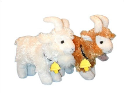 Chèvre en peluche avec cloche en tissu 2 assorties 20cm
