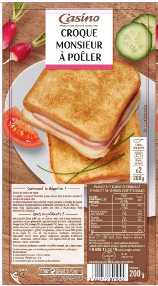- Croque monsieur à poêler (2 x 100g) 200g CASINO