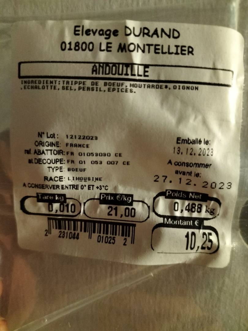 - Produits issus d'abats de bœuf, préparés et conditionnés dans les locaux de l'atelier agroalimentaire des Sardières.