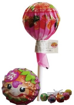 - Packaging en forme de grande sucette contenant 12 sucettes.