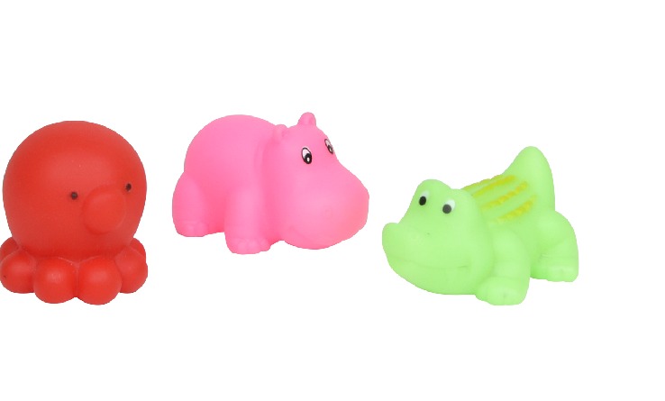 SET DE 3 PETITS ANIMAUX DE BAIN SONORES hippopotame/crocodile/pieuvre