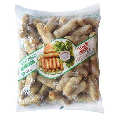 - Sachet contenant 50 pièces de nems au poulet surgelés (poids net : 1.900 Kg)