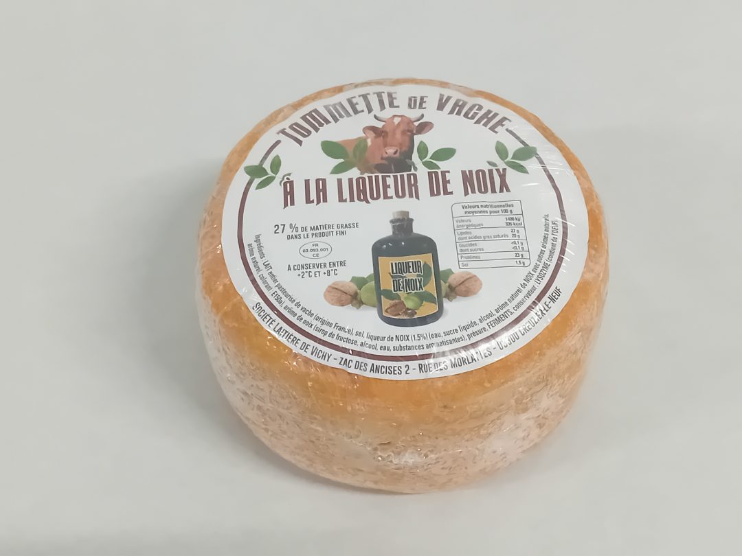 - TOMMETTE AU LAIT PASTEURISE DE VACHE A LA LIQUEUR DE NOIX, ENVIRON 500G