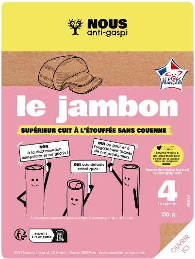 - Jambon Cuit Qualité supérieur découenné et dégraissé, Marque : NOUS ANTI GASPI