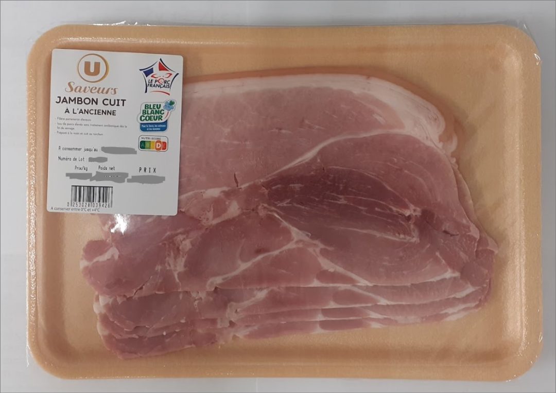- Jambon cuit supérieur à l'ancienne Bleu Blanc Coeur U SAVEURS 3/4 tranches 210g env. PE