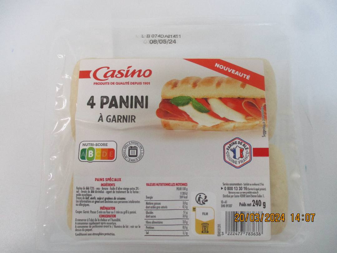 - Panini à garnir nature par 4 - 240g - CASINO