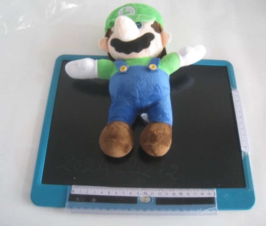 - Peluche non conforme et dangereuse , en raison de la présence de petits éléments ( 2 boutons) qui se détachent trop facilement .