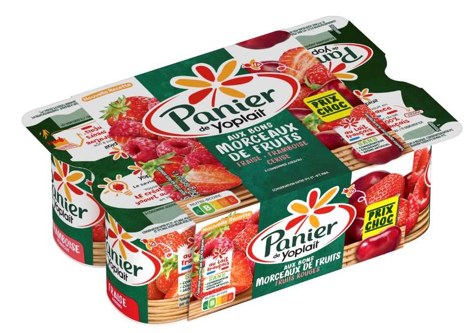 Panier de Yoplait (mangue/ananas, pêche/poire, cerise, fruits éxotiques, fruits rouges, fruits jaunes)