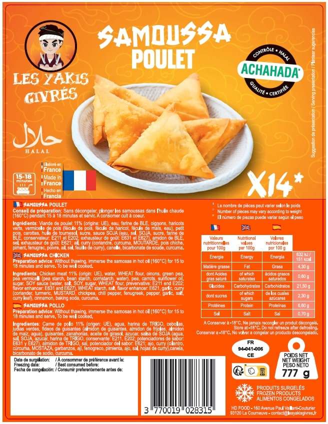 - Samoussas Poulet halal x6 PCS Samoussas Poulet halal x14 PCS