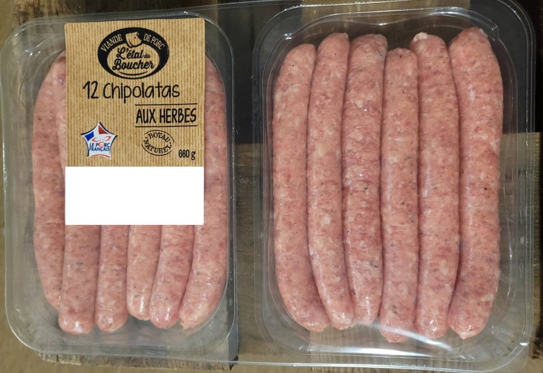 - Barquette de 660g comprenant 12 Chipolatas aux herbes (boyau naturel).