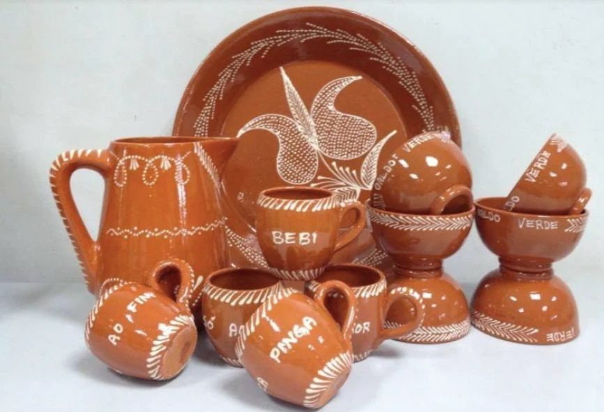 - TACHO/TRAVESSA/ALGUIDAR/ASSADEIRA/ASSADOR/CACAROLA/PRATO/PORRÃO/FRIGIDEIRA/SALADEIRA/TACA/AZEITONEIRA/CANECA/CHAVENA/COPO/GALHETEIRO/MALGA/PALITEIROS/SALEIRO.