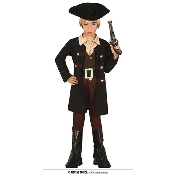 - Sac contenant un déguisement complet de pirate (chapeau, chemise avec gilet et ceinture, veste, pantalon, guêtres).