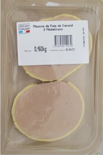- mousse de canard 2 médaillons 160g (21731.30) mousse de canard 2 tranches 160g (21093.30)