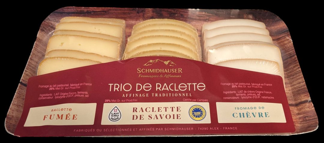 barquette de raclette TRIO (chêvre/Savoie/fumée) 500g