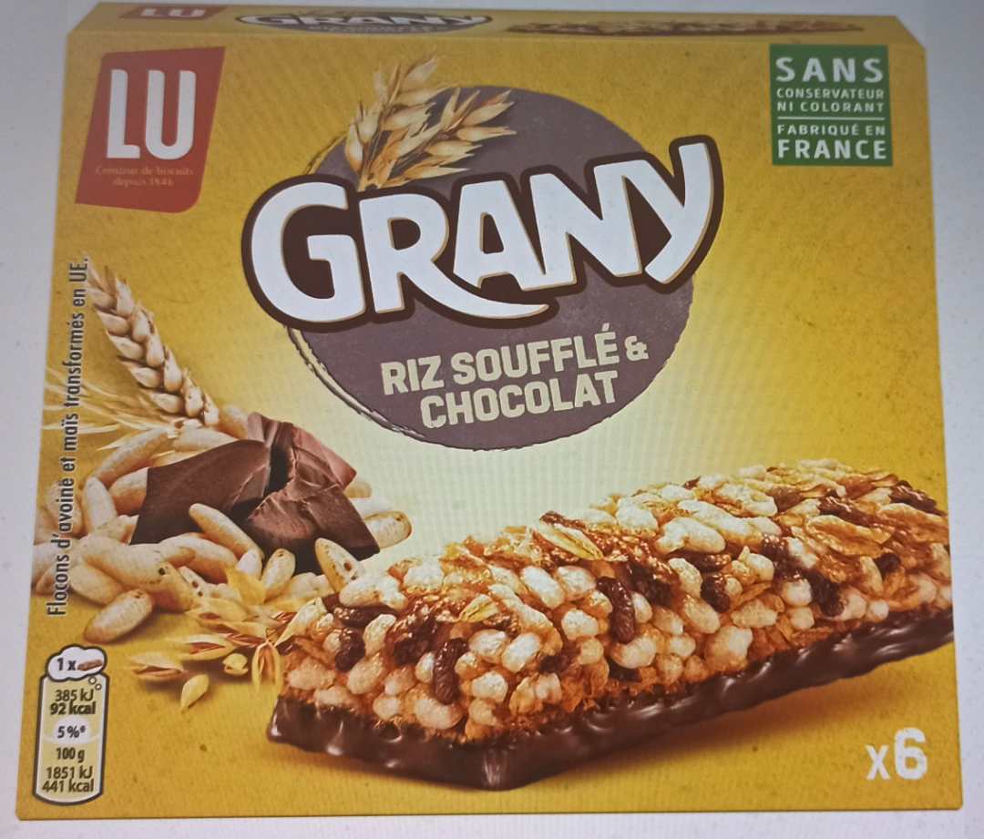 - Présence potentielle de 6 barres de Grany Noisettes dans des étuis de Grany barres riz soufflé et chocolat