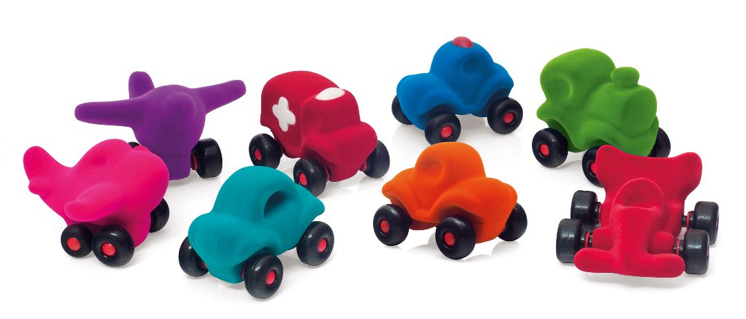 Rubbabu - Assortiment A - 8 petits véhicules en display - 12cm