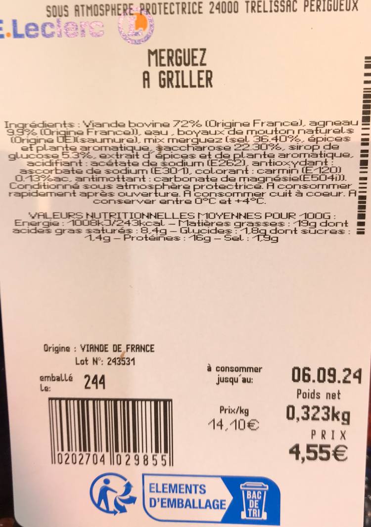 - Merguez conditionnée par 4 ou par 8