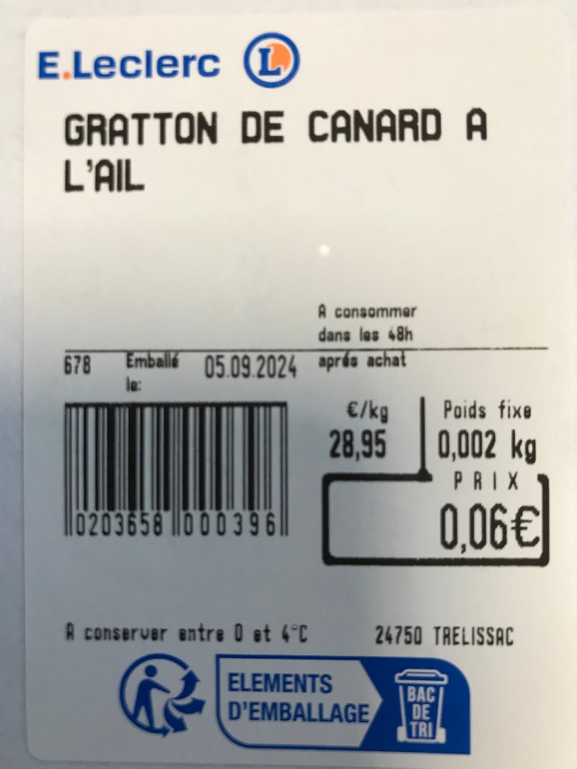 - Grattons de canard à l'ail vendu au rayon charcuterie coupe